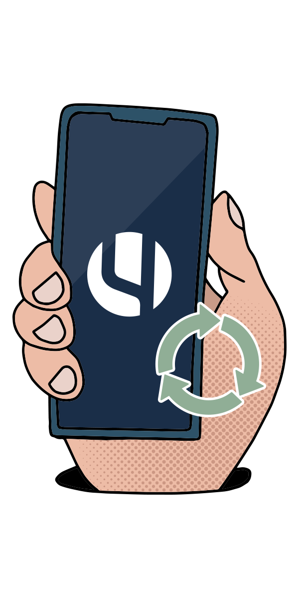 We gebruiken zoveel mogelijk opgeknapte en hergebruikte hardware, van computers tot smartphones. Minder verspilling, meer recycling.